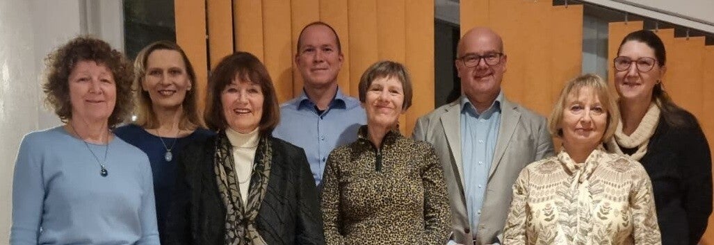Der Vorstand 2026 / 2027 (v.l.n.r.): Regina Löhr (Beisitzerin), Karin Poetsch (stellvertretende Vorsitzende), Roswitha Neuffer (1. Vorsitzende), Holger Rakete (Beisitzer), Beate Göbel (Beisitzerin), Reiner Christoph (Schriftführer), Anette Christoph (Kassenwart), Dr. Heike Lasch (Beisitzerin)